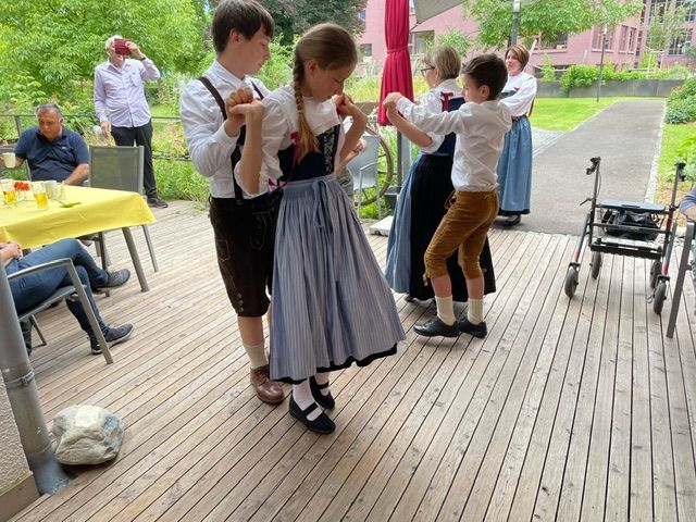 Die Kindertrachtengruppe Frastanz haben unseren BewohnerInnen ein Lächeln ins Gesicht gezaubert mit ihren Tänzen.